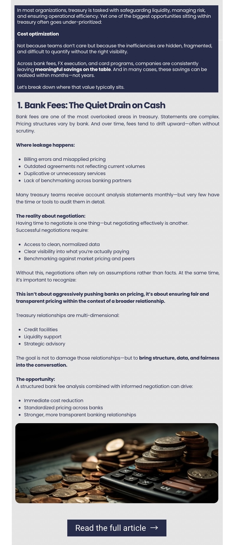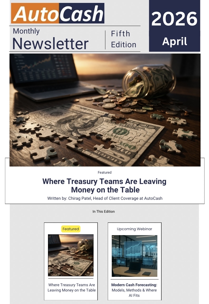 AutoCash Monthly Newsletter – April 2026 | Treasury Cost Intelligence | Complimentary Benchmarking Assessment | Where Treasury Teams Are Leaving Money on the Table